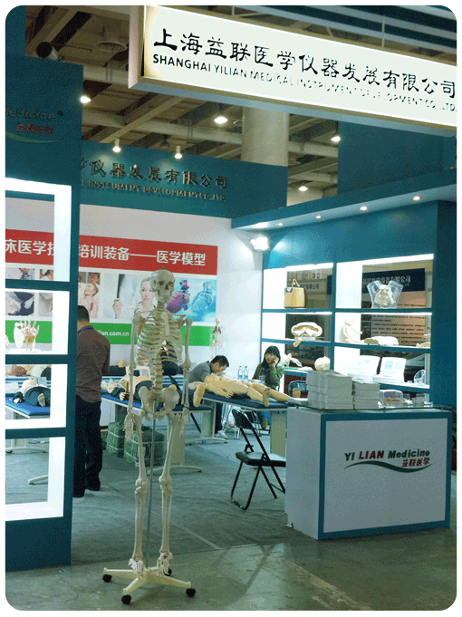 此外,主要展示的医学模型"临床医学技能培训装备"的品种繁多,也是益联参与本届展会的一大特色。其模型品种广泛涉及到骨髓穿刺技术模型、外科打结训练模型、吸痰练习模型、吞咽机制模型、气管插管模型、手臂注射训练模型、胸腔穿刺引流模型、气胸处理模型、脊椎穿刺模型、缝合练习手臂、前列腺检查模型、腹膜透析模型、心肺听诊模型、心肺腹部听诊模型、环甲膜穿刺模型、婴儿模型等。近年来随着我国医学专业领域高教的发展,益联与时俱进,积极研发新产品,以新的实训设备及各种模拟教学实训软件以满足市场需求。