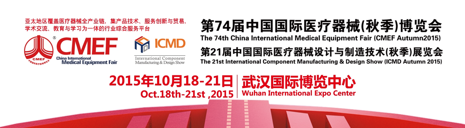Ò½ÁÆÆ÷е½çÍòÖÚÖõÄ¿µÄµÚ74½ìÖйú¹ú¼ÊÒ½ÁÆÆ÷е²©ÀÀ»á-2015CMEFÎ人Çï¼¾Ò½ÁÆÆ÷еչ»á£¬½«ÓÚ2015Äê10ÔÂ18-21ÈÕÔÚÎ人¹ú¼Ê²©ÀÀÖÐÐľٰ졣½ìʱÓÐÀ´×Ô20¶à¸ö¹ú¼ÒµÄ2600Óà¼ÒÒ½ÁÆÆ÷еÉú²úÆóÒµºÍ³¬¹ý100¶à¸ö¹ú¼ÒºÍµØÇøµÄ150000È˴εÄÕþ¸®»ú¹¹²É¹º¡¢Ò½ÔºÂò¼ÒºÍ¾ÏúÉÌ»ã¾ÛCMEF½»Òס¢½»Á÷»ã¾ÛÓÚ´Ë£¬³¡ÃæÊ¢´ó׳¹Û£¬ÖµµÃÆÚ´ý¡£