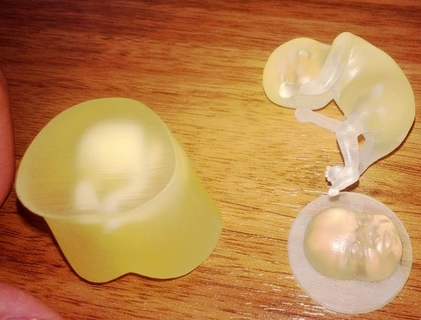 近日,上海某医院医院推出一项服务,用3D技术打印出胎儿的立体模型。通过打印出的胎儿模型,可以看到模型高约5厘米、重约15克,胎儿的脸部五官和手指等清晰可见。模型材质采用进口材料VisiJetCrystal,外观接近水晶体,呈半透明状,触感类似树脂。该模型数据来自一个约18周大的胎儿。