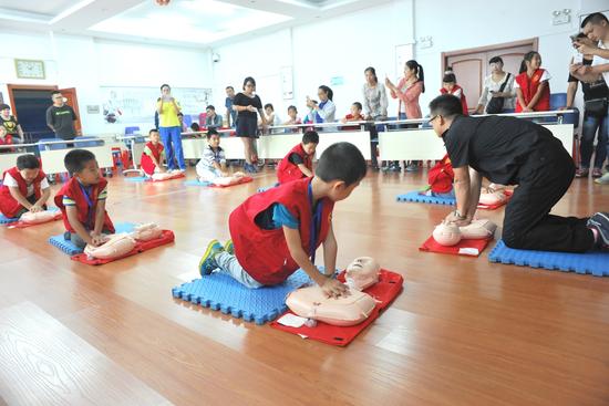 4日上午,晨报30余名小记者来到黑龙江省急救中心,参观120急救指挥调度中心,在心肺复苏模拟人上学习心肺复苏技能。