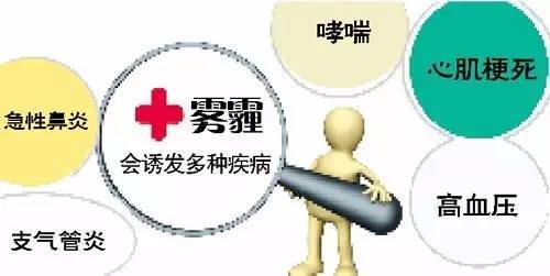 、诱发呼吸道疾病。雾霾的组成十分复杂,大小有数百种颗粒物,这些颗粒物通过人体呼吸,进入呼吸道,会引发气管炎、哮喘等呼吸道疾病。