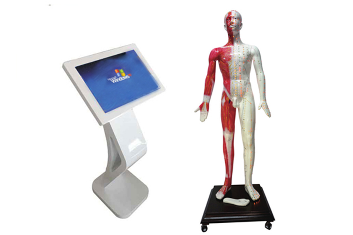 多媒体人体数字交互系统(见图示■人体模型可以调换), 融合当今的“整合”理念,将当今先进的触摸控制技术、多媒 体技术、腧穴理论完美的结合于一体;集课堂授课、学生实验、 考核鉴定于一身;实用软件的操作,展示硬件的功能,外观简 洁,环境优美,功能先进,揉作自助,更体现了该实训基地领 先的教学理念与实用的设备配置。 学生终竭一休机-搡作功能