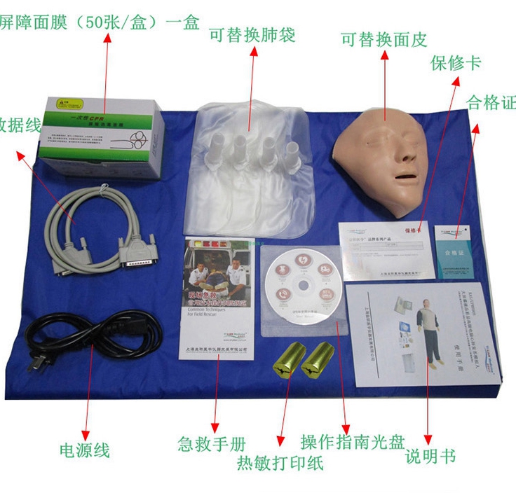急救心脏骤停(如心脏疾病、心肌梗塞、触电、溺水、中毒、矿难、高空作业交通事故、旅游意外、自然灾害、意外事故等所造成的心脏骤停),而现场第一目击者采取呼救、心肺复苏术等紧急求助措施。在采取现场心肺复苏术C、A、B三大步骤:即C—人工循环(胸外按压),A—气道开放。B—人工呼吸。有条件可采取D—自动体外除颤。而现场抢救人员,必须要规范标准进行心肺复苏术A、B、C、D步骤抢救,才能使病人生命在最短的时间内获救。因此。医疗卫生医务工作者及广大群众必须要学会心肺复苏技术,必须要建立师资培训与有相应的配套器材,益联简略地介绍系列心肺复苏模拟人训练使用说明与主要功能: