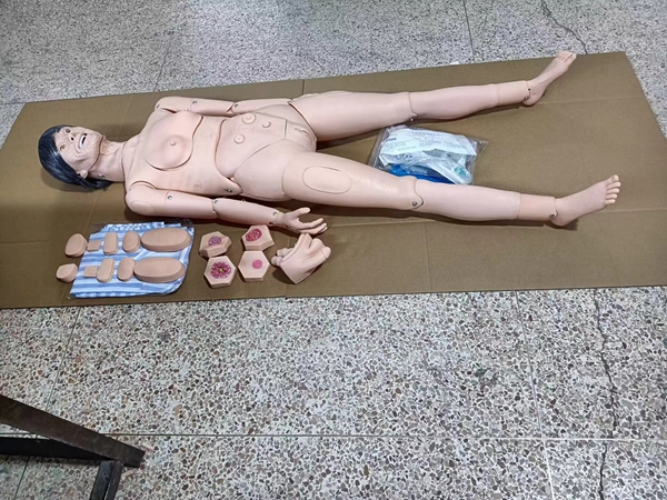 具体来说,老年护理模型可以实现多项护理功能,包括但不限于:洗头发、洗脸、瞳孔观察、眼耳清洗滴药、助听器取出和插入、口腔护理、假牙护理、气管插管、气管切开护理、吸痰法、氧气吸入法、口鼻饲法、洗胃法、手臂静脉穿刺、注射、输液(血)、皮下和肌内注射、胸腔、骨髓、腰椎穿刺、灌肠法、导尿术、膀胱冲洗、前列腺检查、造瘘引流术、结肠造瘘术、臀部肌肉注射等。此外,模型还通常包括无创血压测量功能,以模拟老年人的血压测量过程。