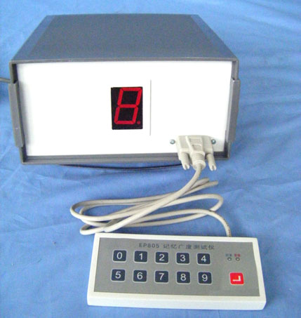 产品概述: 记忆广度指的是按固定顺序逐一地呈现一系列刺激以后刚刚能够立刻正确再现的刺激系列的长度。其呈现的各刺激之间的时间间隔必须相等。再现的结果必须符合用来呈现的顺序才算正确。记忆广度是测定短时记忆能力的一种简单易行的方法。 本仪器用于心理特点测定中的记忆广度实验和提高记忆力的训练,并具有同时测量被试视觉记忆、反应速度三者结合的能力的功能,是一种常用的心理学仪器。 功能特点: 仪器可实现二套从三位至十六位的数字编码显示,称为码 1 和码 11 。每套编码中相同位数的 4 个数组为一位组, 14 个位组为一套编码。数字从 0 - 9 随机组合。 仪器组成: 仪器由控制器、主试面板、被试面板、键盘等部分组成。微电脑(单片机)组成控时器。被试面板装有一位大数码管显示材料,键盘输入回答信息,主面板装有六位数码管实时显示计错、计分、计位计时。