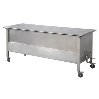 该解剖台双开台面平移挂放,钢绳升降,手摇减速传动力,有标本储藏及解剖等功能。带万向静音刹车。