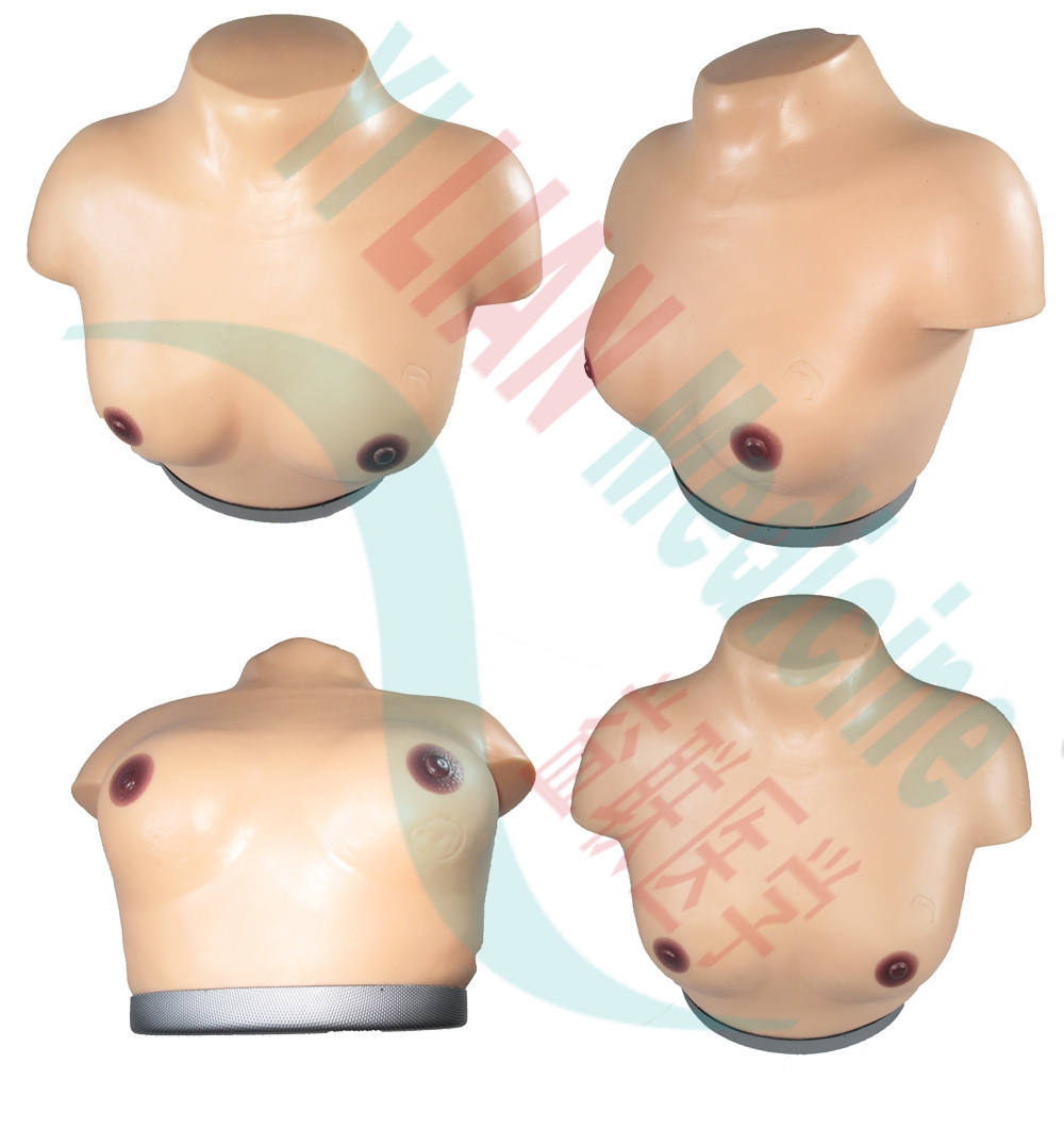 主要功能: • 包含各种常见乳腺瘤的典型体征、专门针对女性乳腺临床诊断和自我检查而设计。 • 进口塑胶材料制作、质地柔软、触感真实。 • 模型的不同分区提供不同的模拟特征、可以充分满足教学的需要。 • 模型提供以下病变: 结节:质地坚硬、表面不光滑、可视为恶性肿瘤质地相对柔软、表面光滑、可视为良性肿瘤 淋巴转移:腋窝及颈部可触及质地较硬的淋巴结 乳头的改变:乳头凹陷;乳头破溃及血性液体溢出 皮肤的改变:皮肤凹陷,桔皮样外观。 产品实拍: