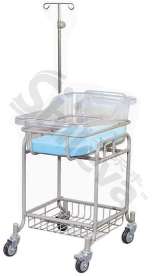 Deluxe Baby TrolleySpecification:800*480*900mm(L*W*H)Description: Made of #304 stainless steel #304 Baby tray is made of ABS plastic, 4” castors.Option: Anti-bacterial leather mattress