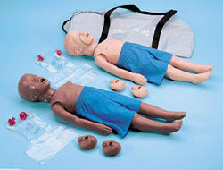 This economical manikin realistically portrays a 3-year-old child forinstruction of CPR techniques. This lightweight manikin is foam filled with no internal parts to break. Features an airway cutoff, individual mouth/nosepieces, and a completely disposable airway system with a nonrebreathing valve. Carrying bag included. Three-year warranty.