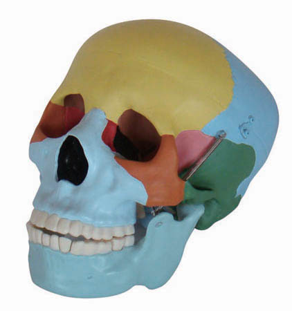 在彩色自然大头骨模型上进行写色,供更准确的学习。分成三部分。尺寸:19x15x21CM。