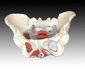 这款模型适合医学院讲解人体解剖时用作直观教具,使学生便于了解女性盆部及会阴部的肌肉和筋膜层次(盆膈、尿生殖膈等)以及子宫、直肠、膀胱的位置关系。本模型用PVC制成,自然大小。
