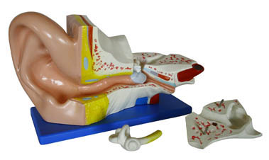 大型耳模型,适合初级科学课程使用,显示耳的内部构造及外耳、中耳、内耳和平衡器官的位置关系。