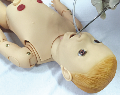 小儿鼻饲管法采用半卧位或仰卧位体位,应根据年龄选用合适的胃管,运用该模型可以进行 标准的鼻饲管操作训练。