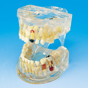 功能特点:该模型由上颌牙列和下颌牙列两个部件组成,并显示乳牙上颌、下颌牙的发育形态和构造以及龋齿、根尖脓肿等病理结构,共有14个部位指示标志。